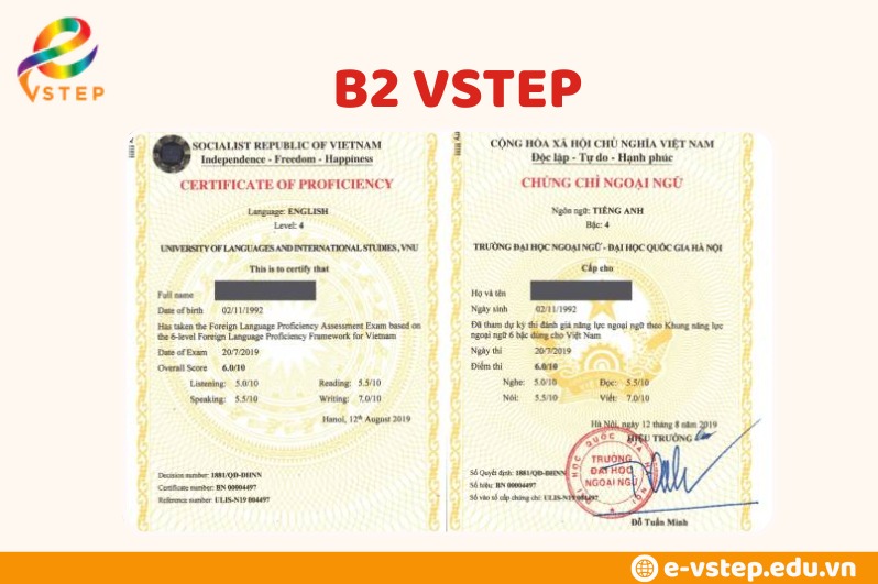 • Được nhiều nơi công nhận: Các cơ quan, trường học và doanh nghiệp tại Việt Nam đều chấp nhận B2 VSTEP, thuận lợi cho xét tuyển, thăng hạng hoặc du học.