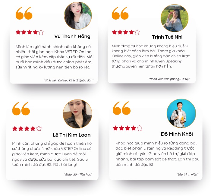 Chương trình luyện thi Vstep cung cấp lộ trình học từ cơ bản đến nâng cao, phù hợp với mọi trình độ. Đăng ký ngay để ôn luyện hiệu quả và tự tin chinh phục chứng chỉ Vstep!