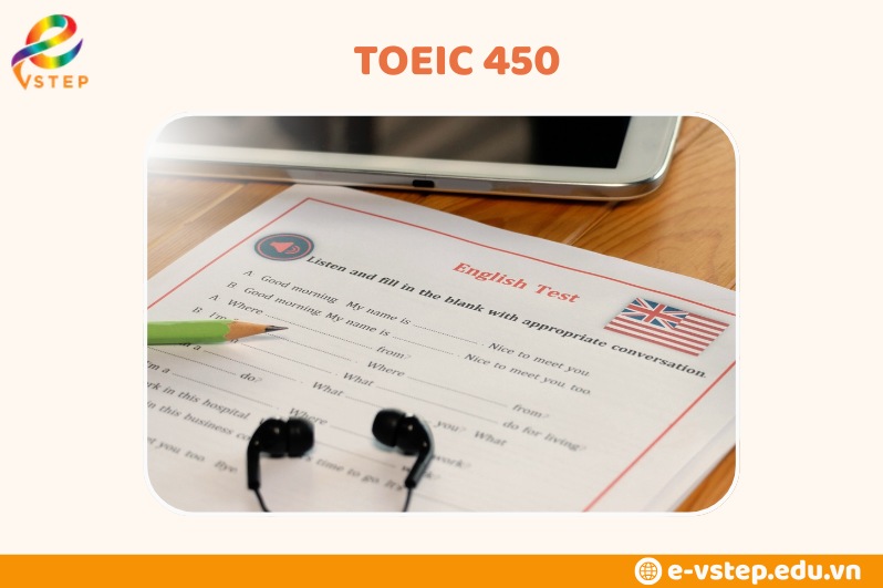 Mức điểm TOEIC 450 phản ánh khả năng tiếng Anh ở trình độ cơ bản, đủ để thực hiện các nhiệm vụ giao tiếp và công việc đơn giản. Cụ thể: